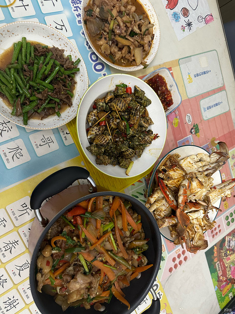 第一顿白蟹是上周,因为做饭迟了,没拍,中午的白蟹,拍了图片很壮,有一只还是双层壳的,还有几只晚上吃,没烧,又鲜又壮的白蟹,调味就几片生姜片和一点盐,一点老酒就行了嘛,很好吃哦!