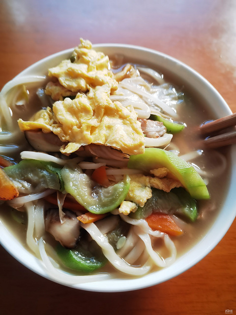 夏天必备,天路丝那就吃个面吧还放了豆皮,鸭蛋,胡萝卜,香菇,猪肉半机器,半手打的面味道还可以!