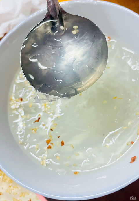 石莲糊青草糊,立秋必吃的呀,昨晚就做好了放冰箱里,早上起来熬了糖浆,没有薄荷水,就用薄荷叶,8:09立秋到了马上吃