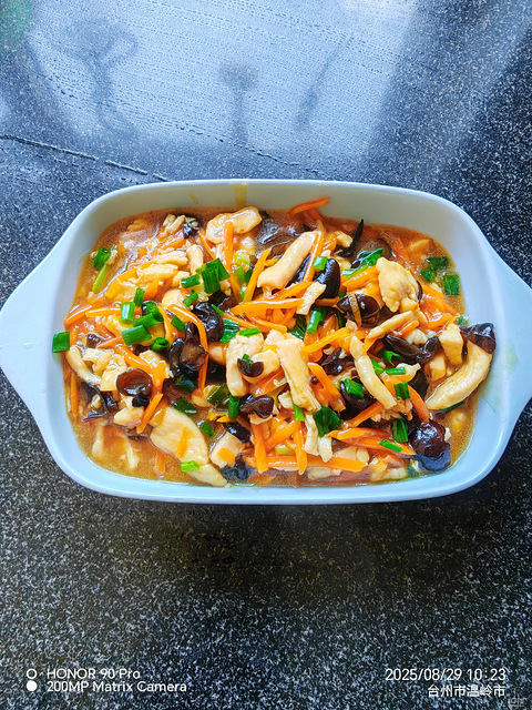 本来做可乐鸡翅的,玩手机没注意锅里,烧了割黑炭,重新做一份鱼香肉丝,鸡胸肉切条,加老酒,盐,淀粉拌匀,上面喷油,再调个汁,生抽老抽粗耗油白糖淀粉水,锅里油热放鱼鸡胸肉丝炒变色,盛出来留底油放胡萝卜丝和黑木耳丝炒炒,再放入鸡胸肉丝翻炒,一圈老酒,加调好的料汁,中小火咕咚两分钟,撒葱花