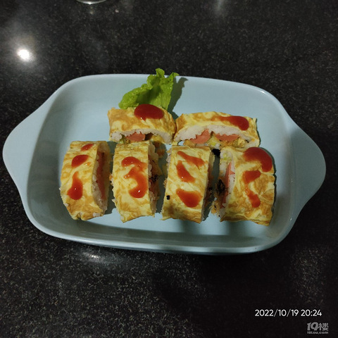 晚上夜宵,突发奇想,用鸡蛋皮做了寿司,没啥材料,将就点,味道很不错,卖相不咋样,下次挤番茄酱用裱花袋应该好看点