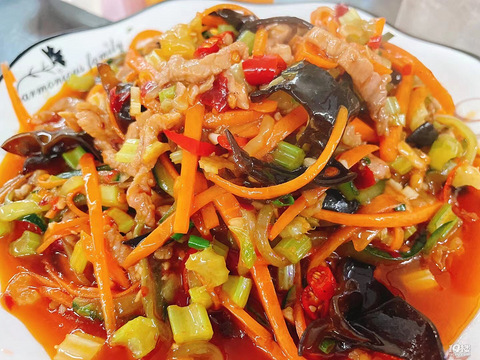 鱼香肉丝,很下饭,以前第一次吃这道菜的时候也奇怪过,后来发现这道菜的口感真的很独特。宫保鸡丁,玉米烙真的又脆又香