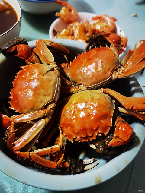 黄酒煮煮田蟹放了红糖,来一碗,冬天暖洋洋再来个对虾和大葱猪肚炒个饭,就三个人小酒刚好