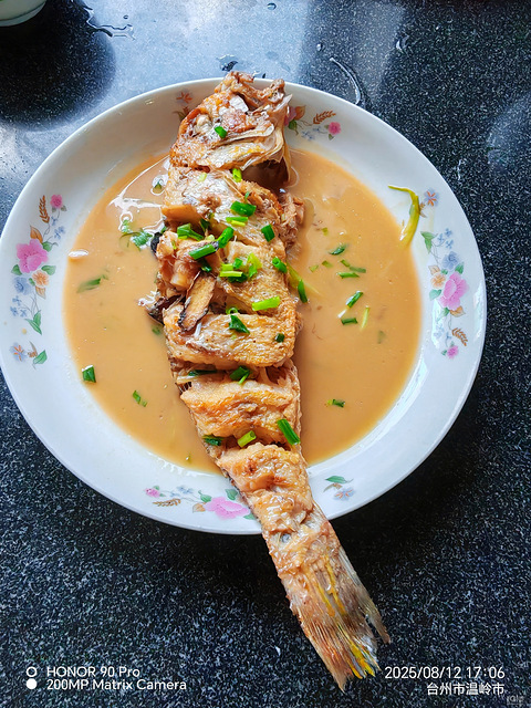 这鱼粉粉的还挺好看的,刮鳞,剖肚,洗干净,划几刀,热锅热油放鱼煎,放姜片,盐,一面金黄翻面,两面金黄来一圈老酒,放的白糖,生抽,加水煮开再煮三五分钟,撒葱花,好吃!