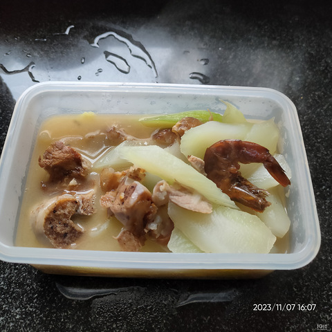 周三晚上就预订了瘦肉丸,周五一大早去菜场买了肉,买了大排,从大排上割了小半斤瘦肉,加盐鸡精料酒木薯淀粉,泡打粉一点水,绞肉机打好,冷藏,下午四点回家煮上,一如既往的好吃