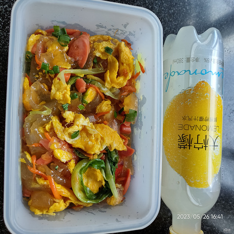 大拉皮买了好多,吃了吧!鸭蛋,生菜,火腿肠胡萝卜丝,炒炒炒,配一瓶柠檬水,安逸