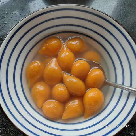 有两年没吃这个山粉圆了,买两盒回来煮着吃,还是原来的那个味道,好吃,里面芝麻花生馅的,颜色也好漂亮。