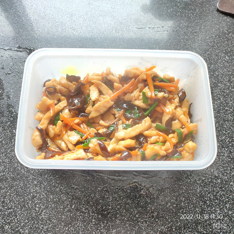中午鱼香肉丝盖浇饭,味道真的好赞啊!这么一份,我侄女居然吃完了,平时吃饭都吃几口的,鸡胸肉切条加淀粉,盐,生抽,料酒腌一下,糖醋汁看个人口味调哦!