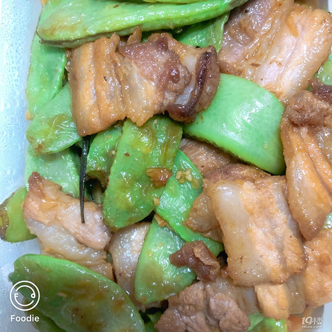 扁豆炒肉,扁豆口感不是很好。小时候感觉这种扁豆是生产在厕所边的,哈哈哈,鸡腿。炒豆面。@台州小帮帮06