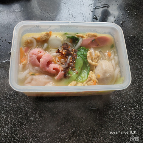 昨晚做的瘦肉丸半成品真的是太成功了,中午煮了一份,超级好吃,摊了鸡蛋饼咕咕,味道好赞哦!
