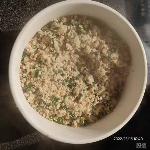 一大早去卖早餐那里装了一碗豆腐渣,摘了一把自家种的大蒜叶子,加一点蒜末,用猪油炒,特别香,有耐心多炒几下,会很好吃哦!