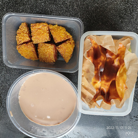 纯手工餐,这一顿餐,刚刚好花了三个小时,珍珠奶茶,珍珠用木薯淀粉做的,奶茶用普洱+白糖炒了+牛奶煮,就这花了两个小时了,酸奶蛋糕空气炸锅25分钟,鸡排煎熟就好了。