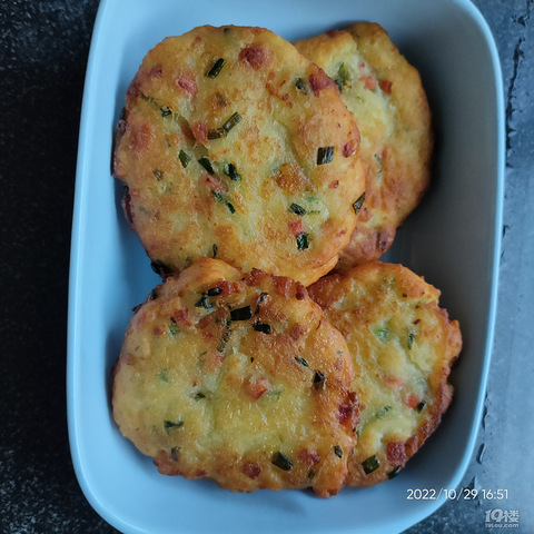 今天的午餐,酸奶小松饼,用酸奶,面粉鸡蛋白糖调匀糊糊,摊的饼,土豆丝洋葱丝胡萝卜丝+鸡蛋,面粉,烟,胡椒粉,摊了土豆丝饼,味道都很好吃