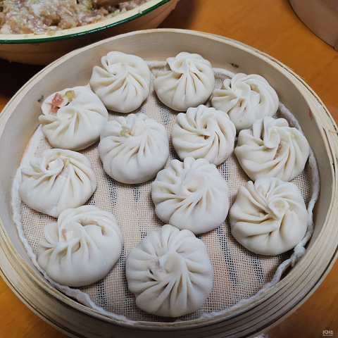 整点饺子778上汽后大火10分钟荷叶饺,小笼包安排!沾点辣椒醋,好吃!