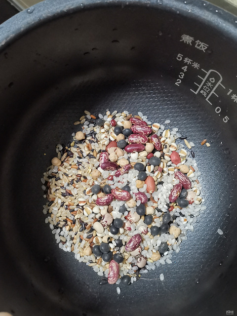 除了买的图二七色糙米外加大米,薏米和小米加了黑豆,赤小豆,熊猫豆,鹰嘴豆,花生米,白眉豆白芸豆,大红豆……再来个自己做的馒头,主打一个杂!!!