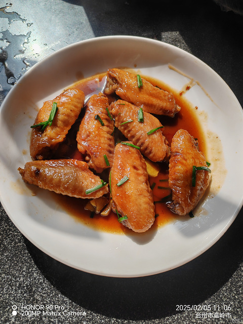 鸡翅洗干净焯水两分钟再洗一下,擦干水分,热锅热油,放鸡翅煎两面金黄,放生姜,再倒入一瓶可乐,煮开中小火炖煮十分钟,放葱花出锅