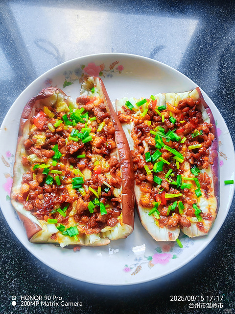 昨天买的茄子,用了豆瓣酱,有点咸,今天重新做一个,肥肉煸出油放瘦肉丁煸香,放大蒜末,小米辣葱白中小火煎,然后放生抽耗油,茄子洗干净放微波炉叮三分钟,拿出来剖开,一条条一道道,然后铺上炒好的肉沫,继续微波炉三分钟,拿出来撒葱花就可以了