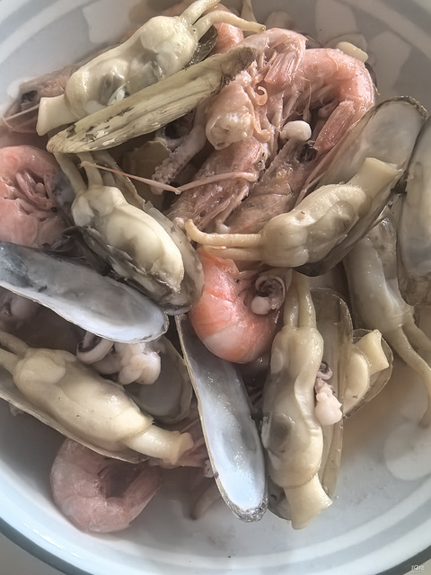 海鲜三拼,蛏子,虾,鱿鱼一起炒炒 香蕉牛奶挺好喝的