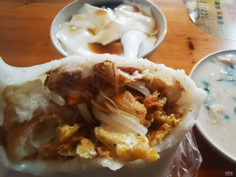 温岭的乾头嵌糕特色就是香头足,偏油脂饱满。加上炒的蛋散特别鲜香。果然被推荐的都是大众口味认可的。就是豆浆不砸的,怎么都不凝结。豆腐脑一致好评。加了好多填料一份嵌糕价格也不贵。好吃再来。