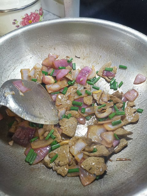 小青菜炒香菇洋葱炒猪肝洋葱爆炒一会放入断生的猪肝放入酱油,盐小葱,1分钟出锅!