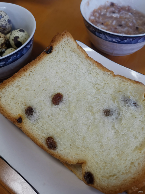 今日早饭,提子吐司杂粮粥咸菜鹌鹑蛋蛋糕店买的提子吐司面包,蒸三四分钟软软的,很不错,配了杂粮粥和咸菜再吃几个鹌鹑蛋,还是不错的!