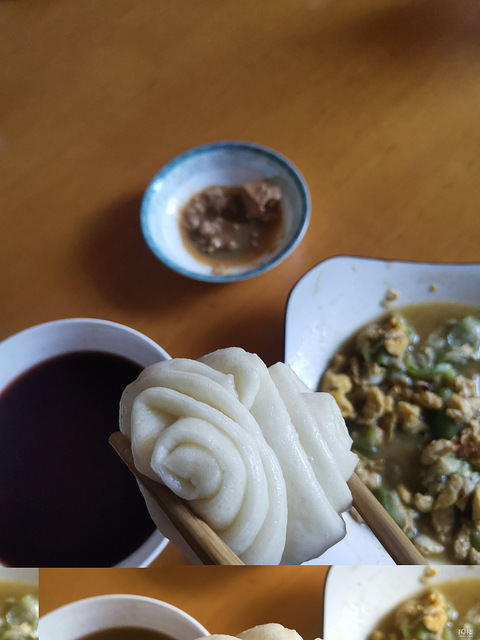 小馒头,黑米粥,豆腐乳,丝瓜炒蛋