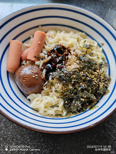 中午太热了,不想做饭,煮了三包炸酱面,葱花都懒得出去摘了,加了个卤蛋和火腿肠,拌匀就可以炫了