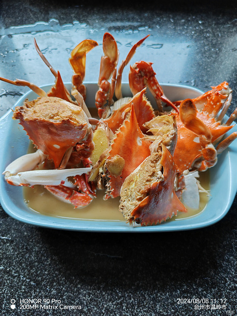 第一顿白蟹是上周,因为做饭迟了,没拍,中午的白蟹,拍了图片很壮,有一只还是双层壳的,还有几只晚上吃,没烧,又鲜又壮的白蟹,调味就几片生姜片和一点盐,一点老酒就行了嘛,很好吃哦!