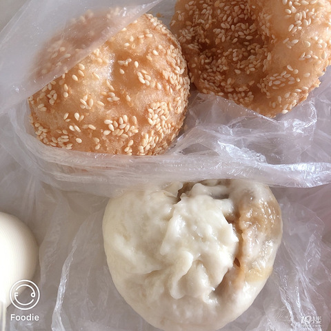 油圆挺香的,上面有芝麻,就是早上吃有点油。肉包也挺油,肉不吃,单单吃皮。油条也是油,油里炸的。今天的早餐有点油啊。饺子里面也是肉。@台州小帮帮06