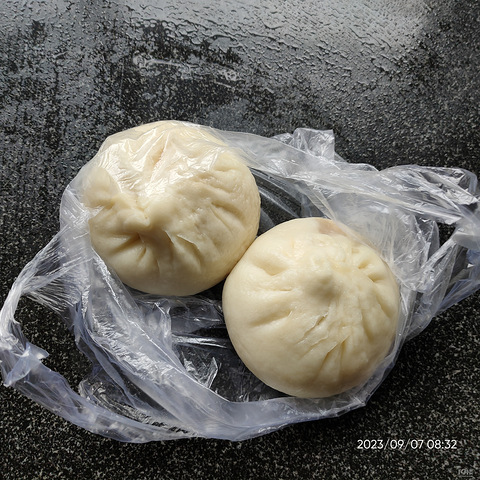 早餐六点半吃的,然后八点半不到就饿了,来两个肉包垫补一下,猪肉手工剁的,粒粒分明,好好吃,很香