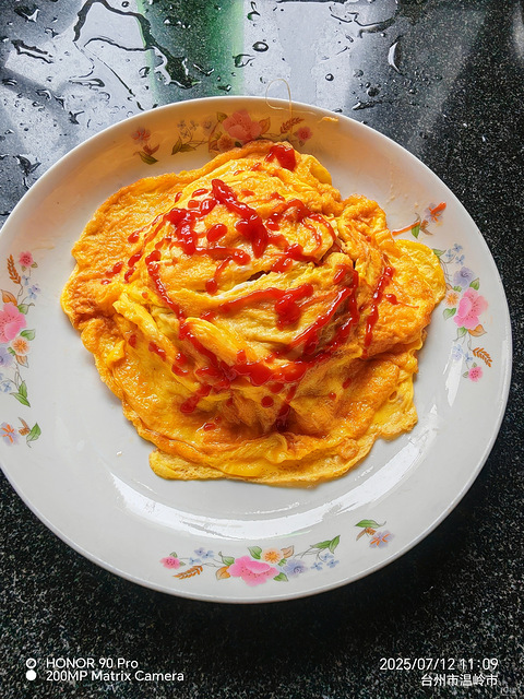 一天吃两顿蛋包饭,就因为中午忘记了放火腿肠,晚饭又做了一份[/11尴尬]。米饭加了猪肉,豆腐干,洋葱炒香,鸡蛋打散煎蛋,本来是流心的好,但是没有无菌蛋,还是煎熟吃放心,挤点番茄酱,就可以了