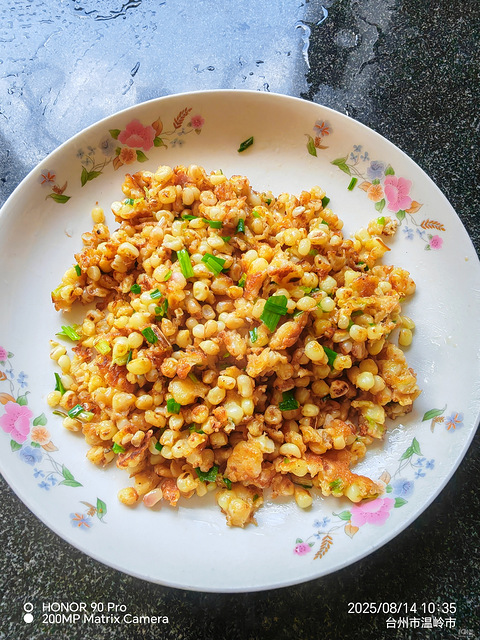 又是连着吃了两天的,玉米剥粒,焯水,放方便面调味粉,鸡蛋,淀粉拌匀,锅里油微热放入玉米粒摊平,翻面失败,直接炒散,炒香加鸡精,撒葱花就可以了,很好吃哦!