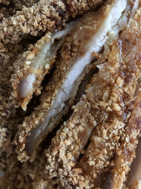 炸大排,很香。虾也炸过,一般。白玉菇炒肉丝挺好吃的,韭菜炒蛋,韭菜不是特别新鲜了。水果是梨,梨好好吃,水分多很脆