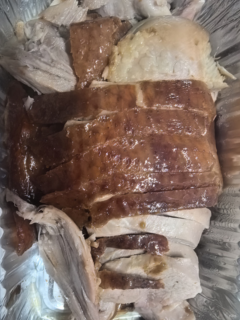 每次买半只烤鸭,皮买两份,包起来很好吃,黄瓜又很脆,大葱丝不喜欢,鸭肉的皮真脆真香,老人小孩都喜欢的烤鸭。