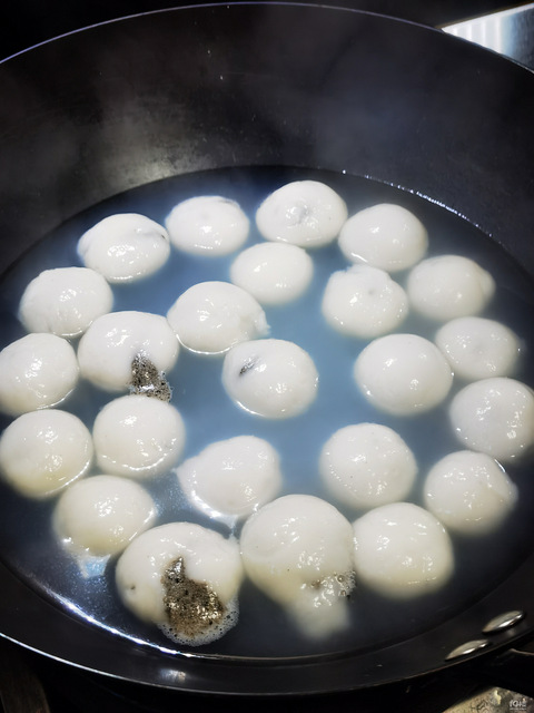 冰箱找出半包汤圆就吃这个了像烧水饺一样,冷水加了三遍差不多二十个,两个破了其他还好