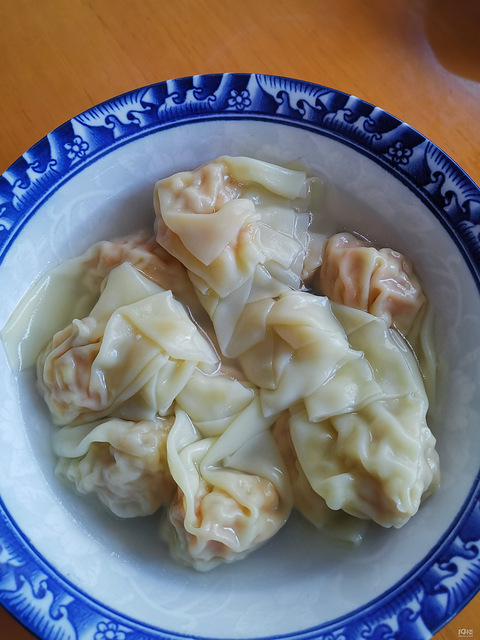 打包了云吞回来阿姨现包的,很新鲜拿回来五六分钟就行了还有一份面,够吃了面就没烧,个头不小,十几个够吃了