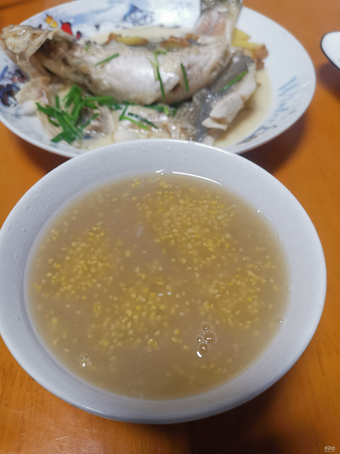 扁桃体发炎,继续喝粥两个剩菜,两个新菜鱼就放了一丢丢猪油,就很奶白色冬瓜下火,特意煮的蒸了下中午的“地三鲜”还有昨天牛排店打包的剩菜