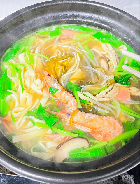 忠爱各种面条的我俩,中餐必须不吃大米饭那就来一碗三鲜砂锅面,娃说嘎嘎好吃,两人吃了一大锅,最后娃直接带锅吃,说这么吃才爽。早上的楼梯又白爬了。砂锅面:瘦肉丝,海带,豆芽,豆腐皮,香菇,火腿片,虾,鳗鱼干,青菜,麦面。