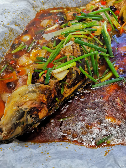 纸包鱼,再加啤酒煮吃完烤鱼再煮配菜放调料,这个汤底煮啥都好吃!宽粉,土豆粉,年糕都不错
