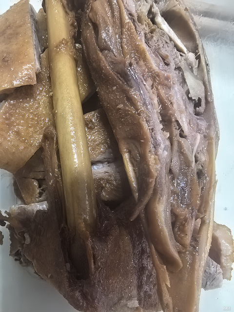 鹅肉,鹅的个头大,肉质感觉硬一点,还是觉得烤鸭好吃