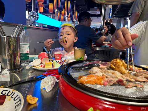 孩子演出结束就一定要去宝龙吃个饭4.30到宝龙,这家店就排起了长队。我们就想着去体验一下到底是有多好吃[ej=1F602]自助烤肉不适合我们。还没吃就饱了,腻。