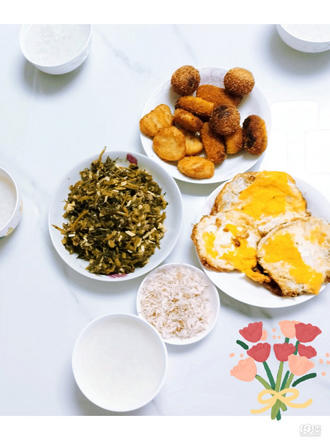 今日份早餐,白粥配外婆自己做的咸菜,完美!