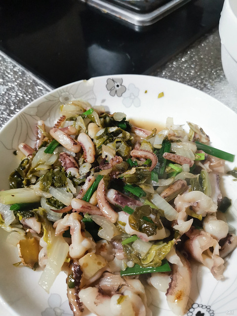 鱿鱼洗剥麻烦,直接买了鱿鱼头30一斤,大的焯水,和咸菜一起炒配粥很不错!