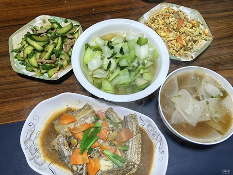 太累了,做不了饭快餐一下!一荤一素37元这个荤菜是大肠,的确应该贵,但不至于35+不过味道好的!黄岩兰园!