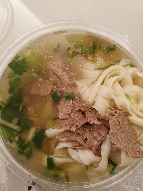 美团拼饭的,12.3元价格不贵,就是时间久了随便面汤分离,但还是有点沾一起牛肉薄片少许,香菜葱花一点点以后还是店里吃吧!!!