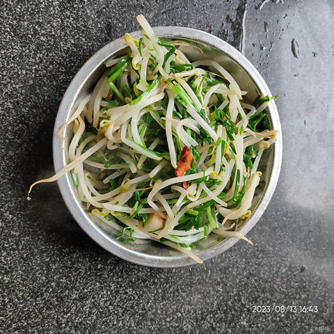 买了绿豆芽,超市保安大叔说炒韭菜好吃,吃了还腿脚不酸了,大补我试试,补不补不知道,味道还可以的