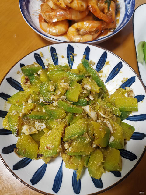 超市买的板栗南瓜,拿了一只咸鸭蛋炒一点都不板栗,介于粉和嫩南瓜之间吧禁渔期了,菜市场30一斤的冻虾,品质类似线上100元四斤吧豆腐,肉沫蒸米饭上面,又弄了个生菜