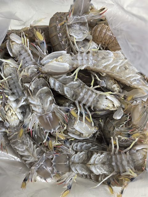 虾姑,活蹦乱跳的,很新鲜,来个一大盘,慢慢啃。部分留起来生腌了,差不多温岭生腌和潮汕生腌差不多的意思,那个肉质很滑嫩又QQ弹
