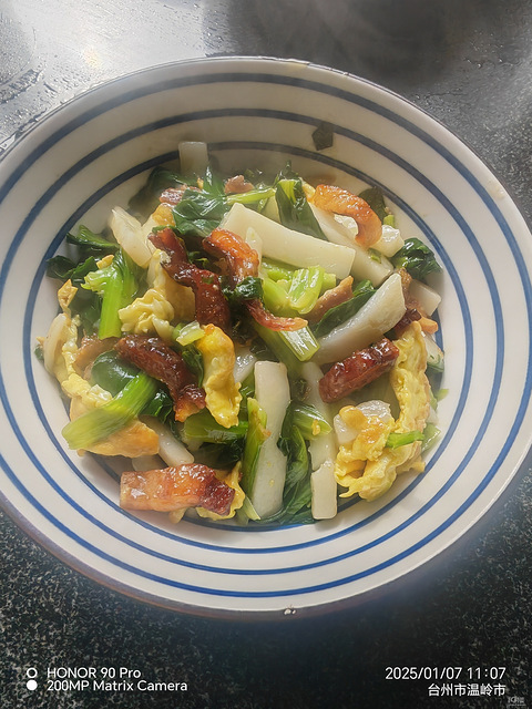 亲戚送来的,我妈说挺好的烧之前忘了拍,肉还蛮多的味道不错,再来个萝卜丝牛肉对虾,青菜,青菜上面是火锅吃剩的豆腐