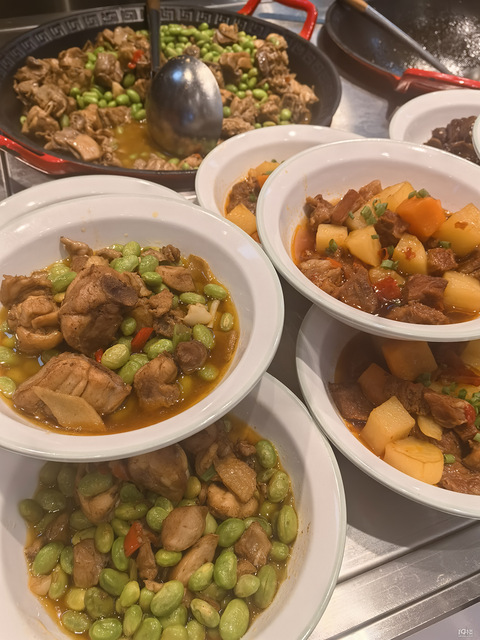 毛豆烧鸡肉,炸鸡腿,蛋羹,老乡鸡随便吃点,意得店近。
